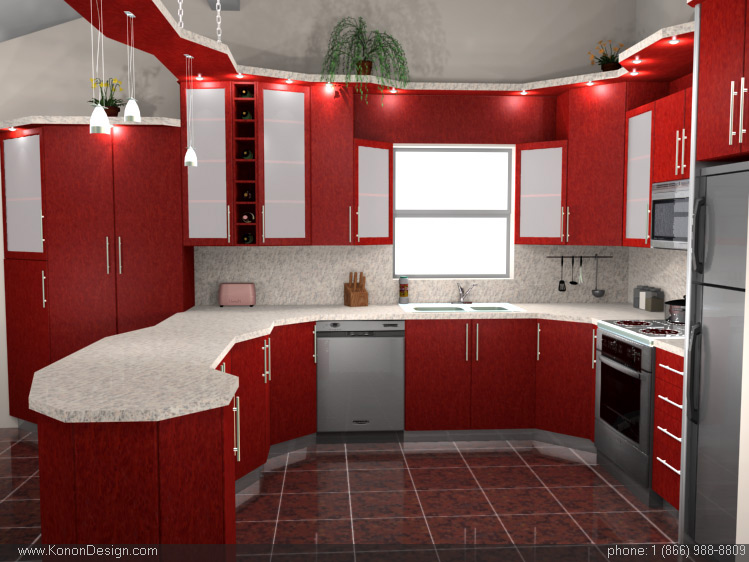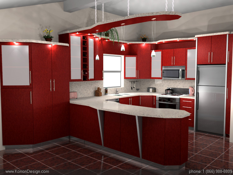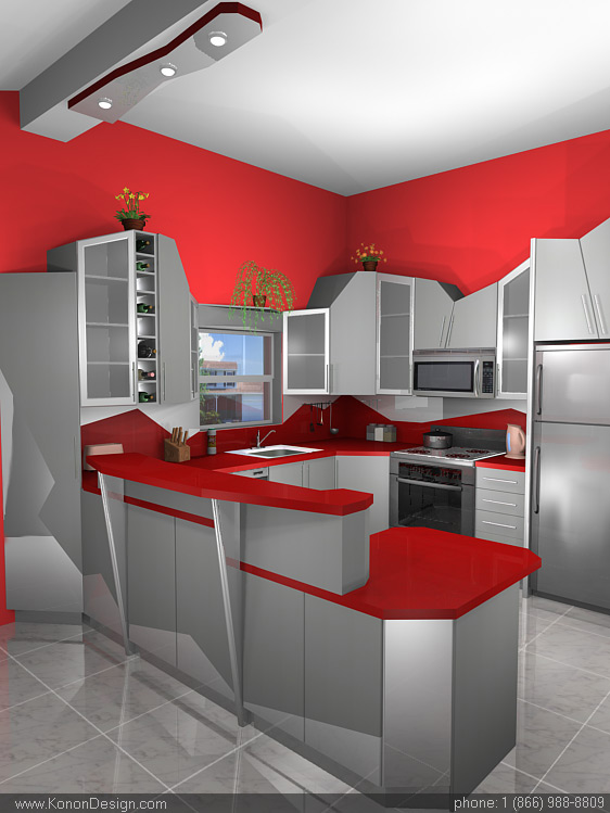 00:07 Red and White Morden Kitchen Color Design Idea with breakfast table